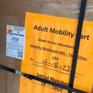 Черговий вантаж підтримки, а саме візки що особисто виробляють волонтери Mobility Worldwide _ Mobility Worldwide Minnesota у США, для комфортного пересування сільською місцевістю людям з обмеженими можливостями та сімейні гігієнічні набори для співробітників соціального закладу, що працюють у найнебезпечніших умовах, від Глобальної організації Americares, CFSR доставили у НЕЗЛАМНИЙ Куп'янськ до УПРАВЛІННЯ ПРАЦІ ТА СОЦІАЛЬНОГО ЗАХИСТУ НАСЕЛЕННЯ КУП’ЯНСЬКОЇ МІСЬКОЇ РАДИ ХАРКІВСЬКОЇ ОБЛАСТІ (УПСЗН Куп'янської міської ради).